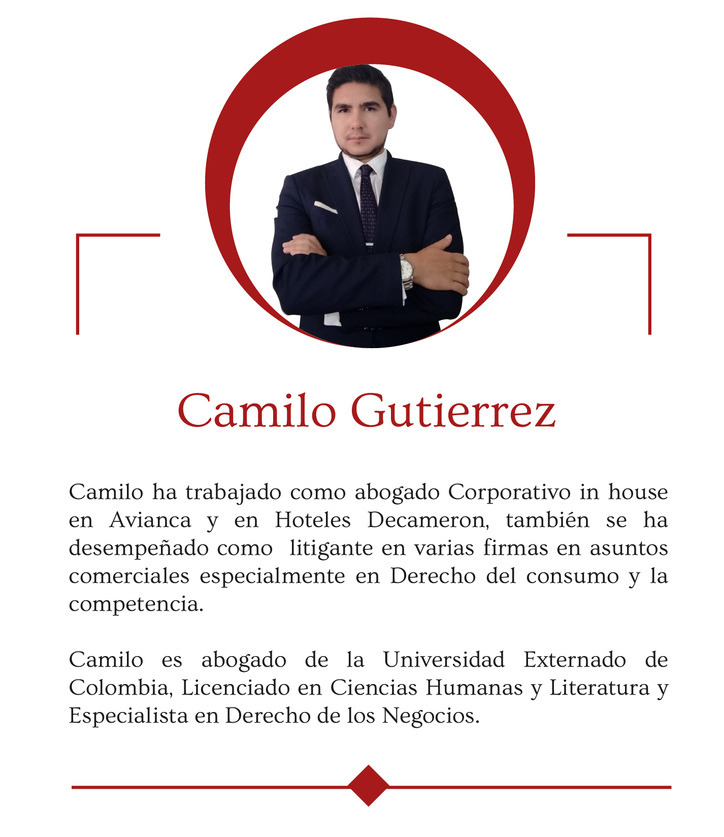 Somos una firma de abogados especializada en prestar asesorías en asuntos de derecho de los mercados, derecho comercial y derecho civil; que proporciona estrategias jurídicas innovadoras, exitosas, integrales y ajustadas a las necesidades del cliente, siempre bajo los más altos estándares de calidad.